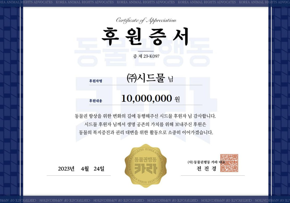 Ä«¶ó¿¡ Àü´ÞµÈ ±âºÎ±ÝÀÌ Á¤¸» µ¿¹°À» À§ÇÑ ¶æ ±íÀº °÷¿¡ »ç¿ëµÇ¾î µ¿¹°µéÀÌ ´õ¿í ´õ ÇູÇÑ »îÀ» ´©¸®±â¸¦ ÀÀ¿øÇÕ´Ï´Ù. À̹ø ±âºÎ¸¦ ÅëÇØ µ¿¹°»ç¶û¿¡ ´ëÇÑ ¸¶À½ÀÌ